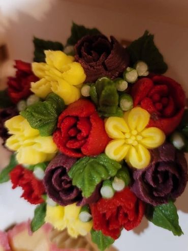 Nineteen premium floral cupcakes. In Loo Loo's famous white wedding bliss flavor or any flavor of your choice.